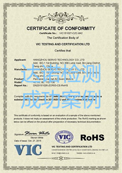 杭州伺尔沃机电有限公司跟我司宁波达诺检测技术有限公司达成合作协议后,由我司全权负责代理其永磁同步伺服电机的CE认证项目并成功取得VIC证书。